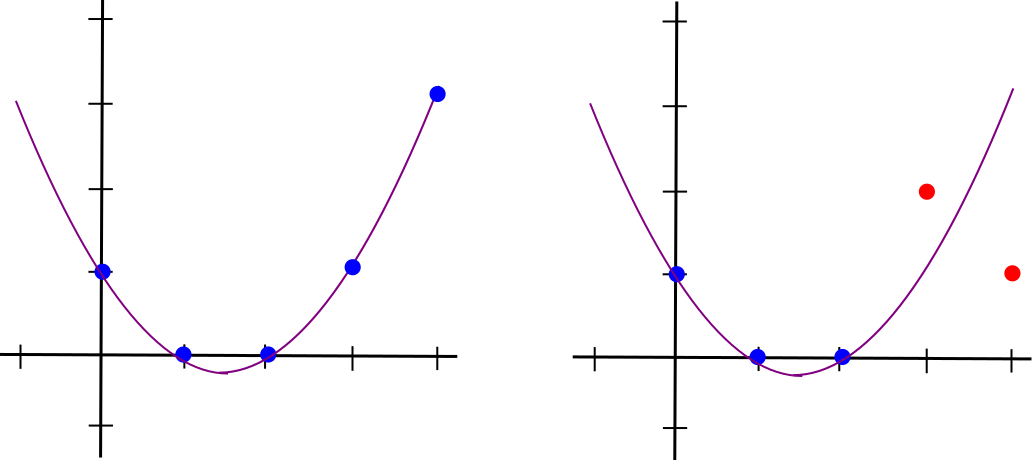 Left: points all on the same \(deg < 3\) polynomial. Right: points not on the same \(deg < 3\) polynomial