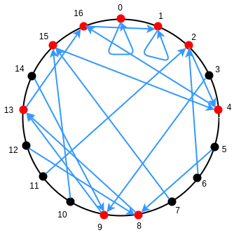 Fermat's little theorem also has another interesting consequence. If \(p-1\) is a multiple of some number \(k\), then the function \(x \rightarrow x^k\) has a small "image" - that is, the function can only give \(\frac{p-1}{k} + 1\) possible results. For example, \(x \rightarrow x^2\) with \(p=17\) has only 9 possible results.