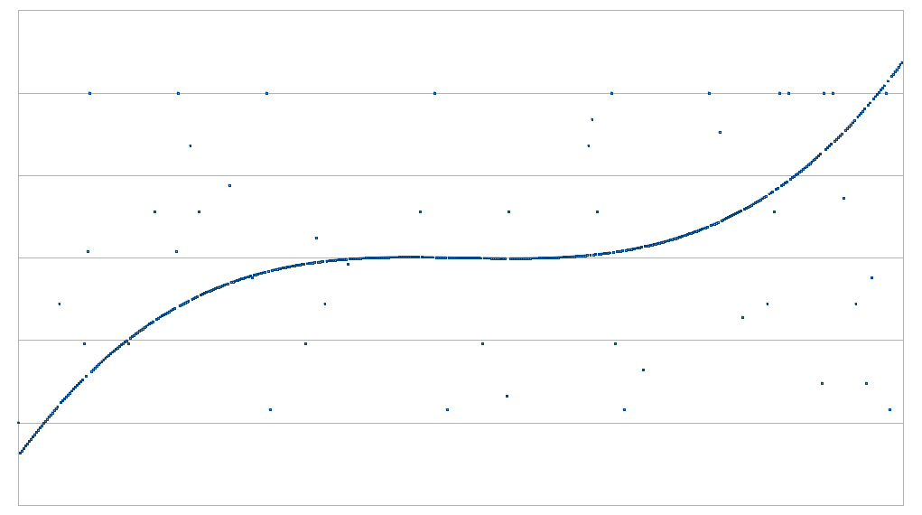Specifically, we will work with \(p =\) 1,000,005,001. We pick this modulus because (i) it's greater than 1 billion, and we need it to be at least 1 billion so we can check 1 billion points, (ii) it's prime, and (iii) \(p-1\) is an even multiple of 1000. The exponentiation \(x^{1000}\) will have an image of size 1,000,006 - that is, the exponentiation can only give 1,000,006 possible results.