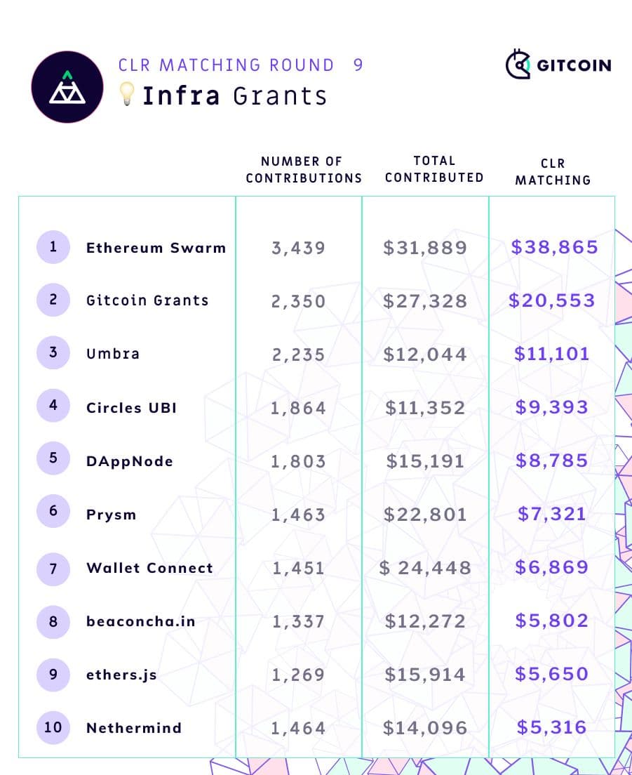 Other new funders include Uniswap, Stakefish, Maskbook, FireEyes, Polygon, SushiSwap and TheGraph. As Gitcoin Grants continues to establish itself as a successful home for Ethereum public goods funding, it is also continuing to attract legitimacy as a focal point for donations from projects wishing to support the ecosystem. This is a sign of success, and hopefully it will continue and grow further. The next goal should be to get not just one-time contributions to the matching pool, but long-term commitments to repeated contributions (or even newly launched tokens donating a percentage of their holdings to the matching pool)!