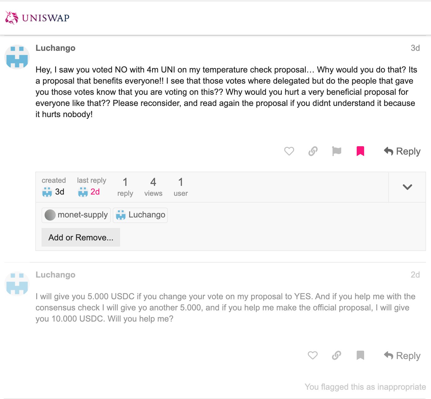 At present, many blockchains and DAOs with coin voting have so far managed to avoid these attacks in their most severe forms. There are occasional signs of attempted bribes: